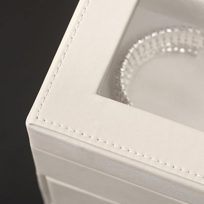 Le revêtement en cuir PU confère une élégance intemporelle à ce coffret à bijoux double tiroir élégant. Sa conception moderne s'adapte parfaitement à votre coiffeuse ou commode.