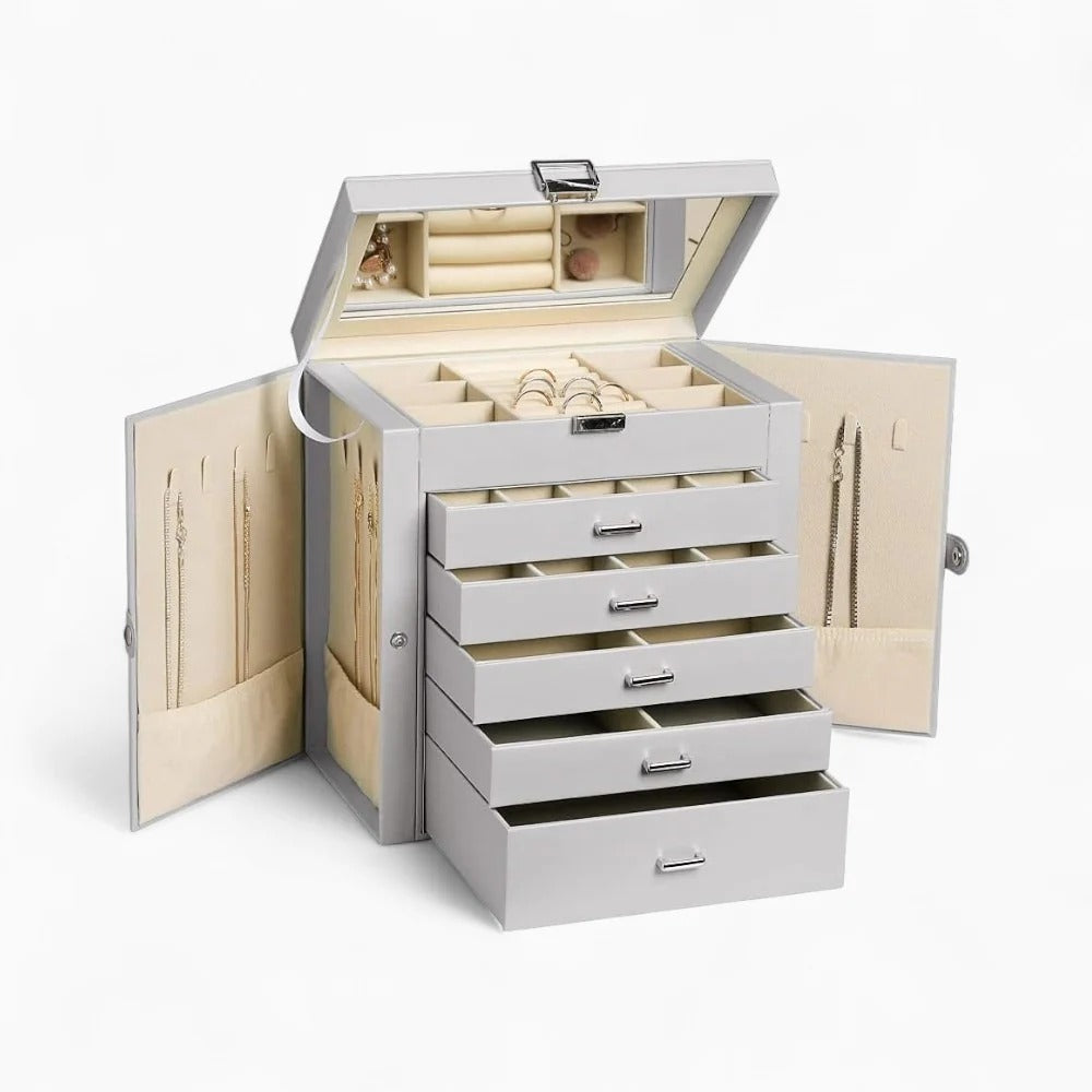 Ce coffret à bijoux avec compartiments pratiques s'adapte parfaitement à votre style de vie moderne. Chaque tiroir est pensé pour protéger vos pièces les plus précieuses tout en facilitant l'accès quotidien.