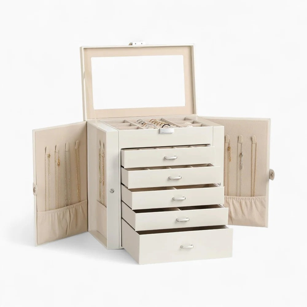 Cette boite a bijoux avec tiroir élégante repense totalement votre organisation quotidienne. Sa grande capacité vous permet de ranger bijoux et cosmétiques dans un seul espace optimisé.